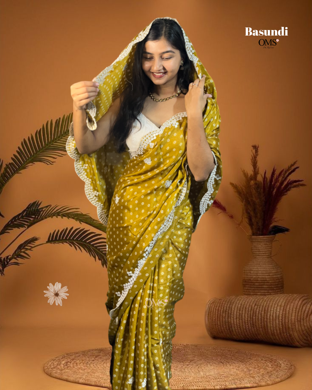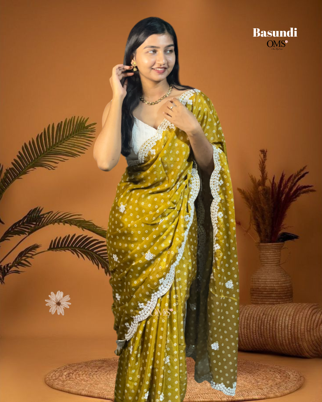 Wrap yourself in the charm of Basundi – Golden Grace Edition. This mustard-yellow beauty with delicate white patterns radiates warmth and tradition. Its soft flow and timeless design make it perfect for festive occasions or serene gatherings. Basundi reflects the soul of Indian elegance — bright, pure, and effortlessly graceful.