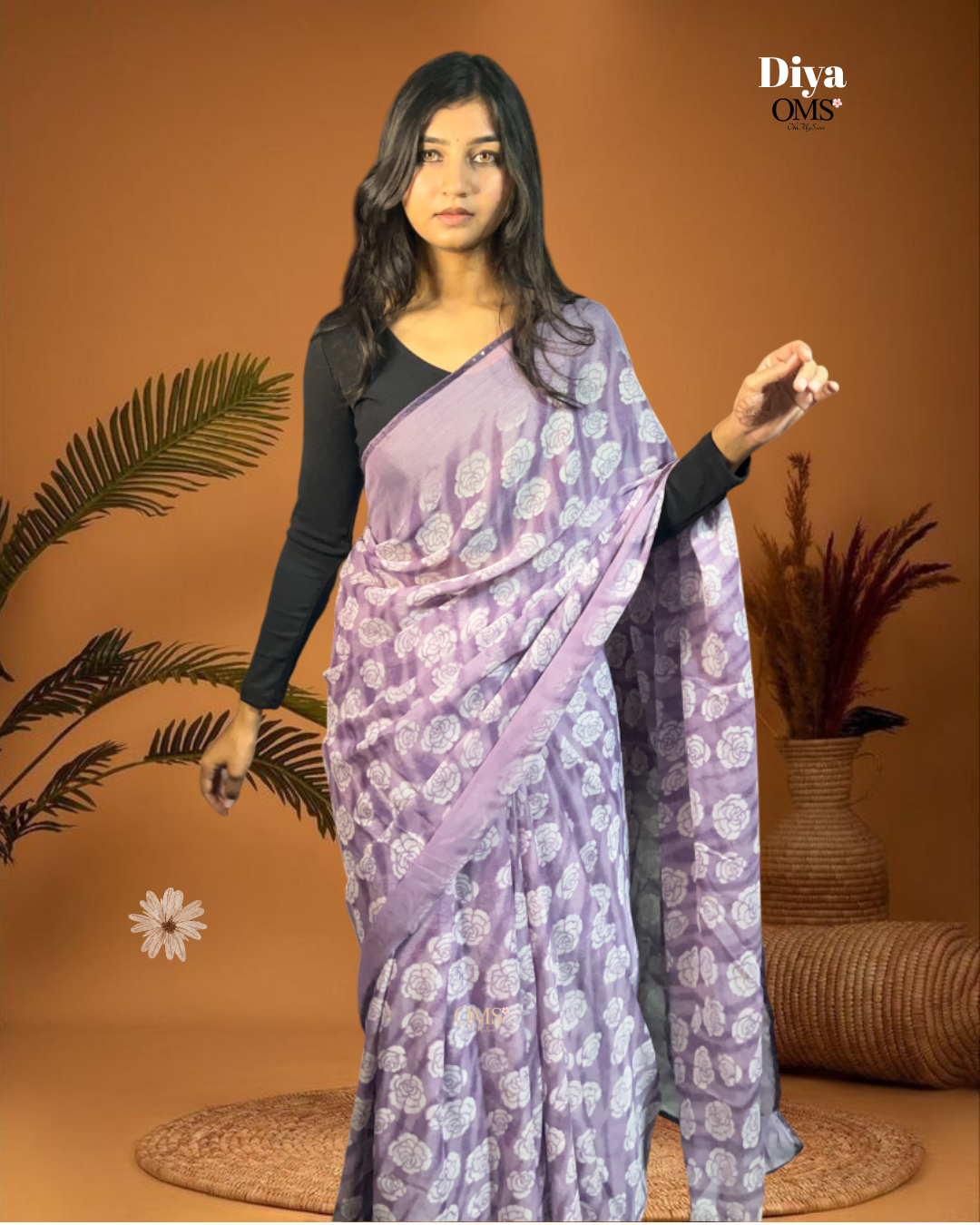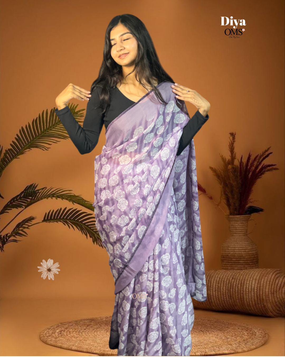 Diya is where simplicity meets beauty. This soothing lavender printed saree brings a calm yet captivating appeal, perfect for your daily wear or light festive moments. The delicate floral pattern adds a gentle feminine grace, while its effortless drape keeps you comfortable all day long. With Diya, you don’t just wear a saree—you wear a glow that brightens every moment.