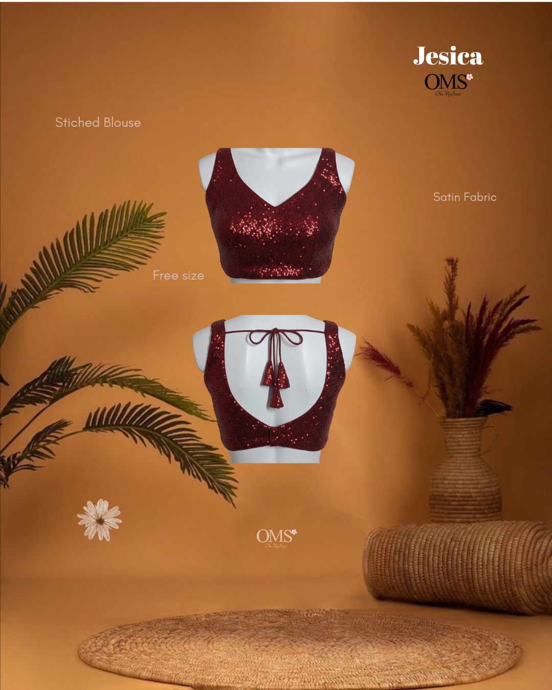 The blouse worn by the model is for styling purposes only. You will receive a regular unstitched blouse piece along with the saree, which can be stitched as per your preference.