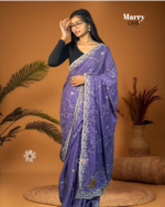 Marry – Soft Lavender Elegance is a perfect blend of subtle shimmer and effortless charm. Designed in a soothing lavender tone with delicate detailing, this saree drapes beautifully and feels light on the body, making it ideal for both daytime occasions and evening gatherings.