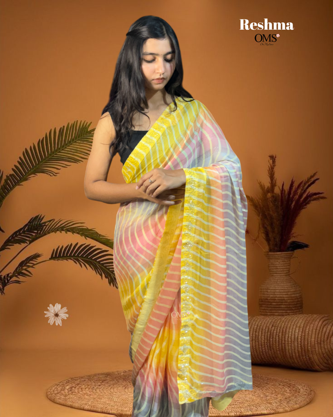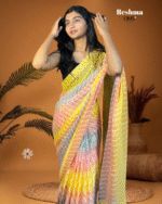 Step into a world of colors with Reshma, a saree that radiates joy and liveliness. The soft pastel tones blend beautifully with wave-like stripes, creating a fresh and playful vibe. Perfect for casual outings, brunch dates, or festive moments, this saree captures the spirit of modern elegance with a cheerful twist. With its breezy drape and radiant hues, Reshma is designed for women who love to stand out effortlessly with grace and charm.