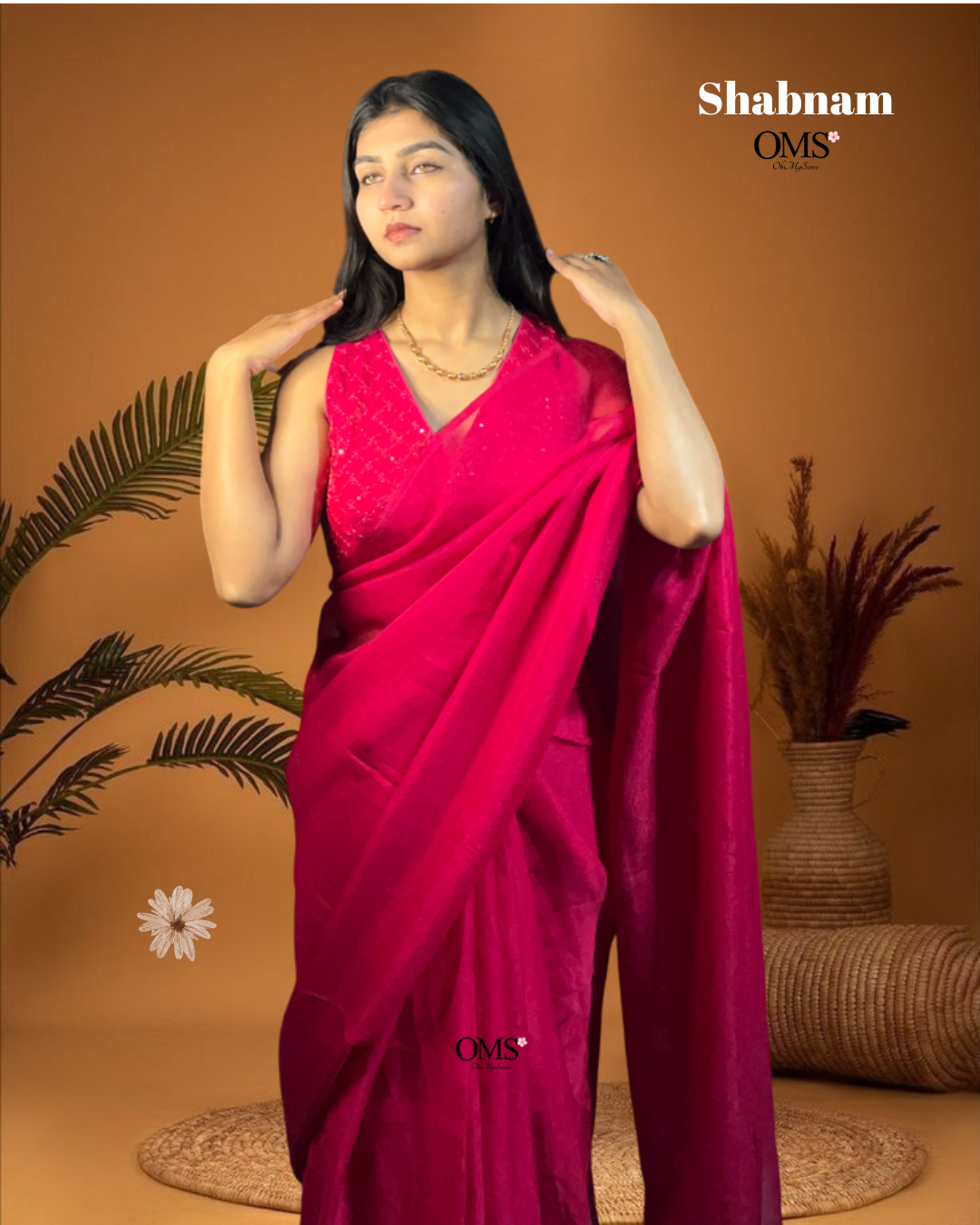 Shabnam – Rani Pink Saree (Stiched Blouse)