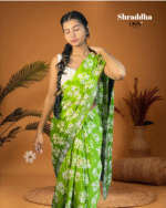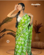 Bring out your inner glow with Shraddha, a saree that celebrates simplicity with style. The soothing green hue paired with delicate white floral prints adds a breezy charm to your look. Perfect for brunches, festive gatherings, or casual elegance — this drape blends comfort and class in every fold.