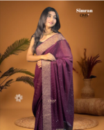 Simran – Royal Plum Elegance is designed for women who adore classic beauty with a hint of luxury. The rich plum shade paired with an intricately woven golden border gives this saree a truly regal feel. Its soft, lightweight drape makes it perfect for festive functions, evening events, family gatherings, or even elegant daytime celebrations.