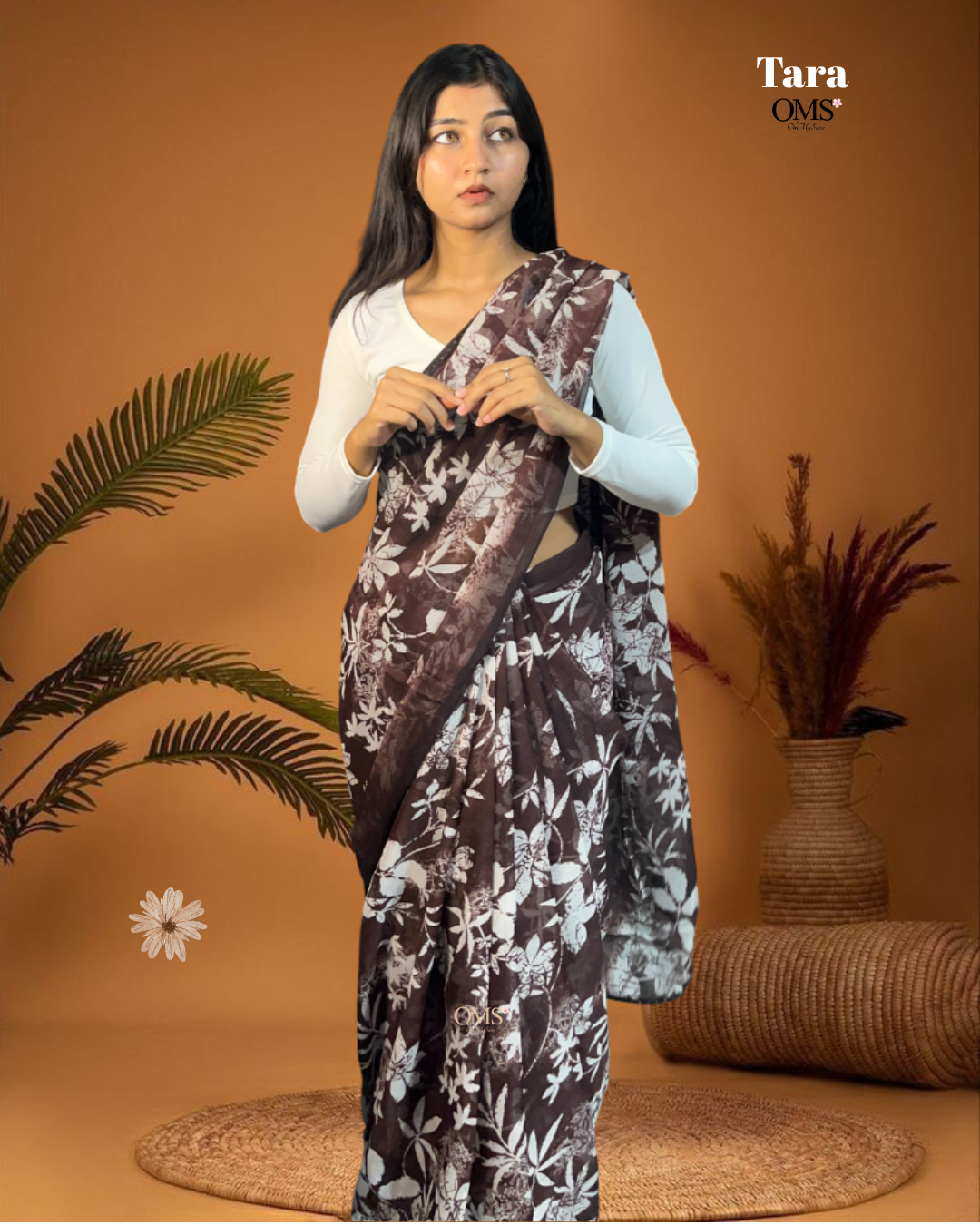 Embrace understated beauty with Tara – Earthy Bloom Elegance. The deep brown base adorned with soft floral patterns reflects balance, strength, and grace. Perfect for the woman who believes in effortless style, Tara blends earthy tones with modern poise, making it ideal for both everyday sophistication and serene evening charm.